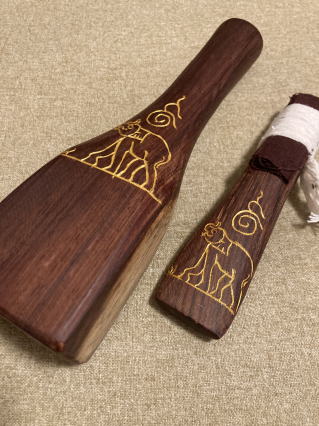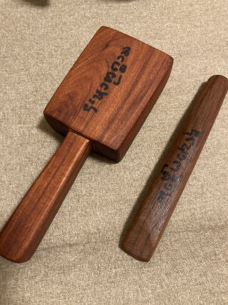 | ハンGドントークセン 木材不明 9000円 今日本ではレア 2025年に現地でアンノプ先生から購入したトークセンです。品質がバラバラでしたので、たくさんの中から割れやヒビがあるものは省き、良い物、重さのあるものを選んで持ち帰りしました。本当に手作りで形や大きさがだいぶ違いますが、無骨な手作り感満載な感じが本来道具とはこういうものだと感じさせます。愛着をもって普段使いの道具にしたい感じのトークセンです。ランナー伝統療法の先生のモデルで手書きのマントラがあります。適度な重さがあります。 |