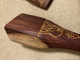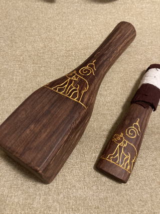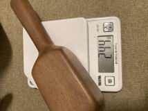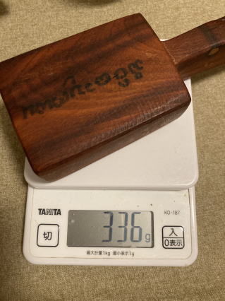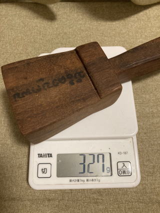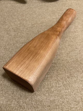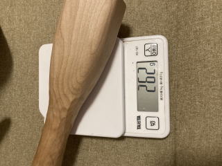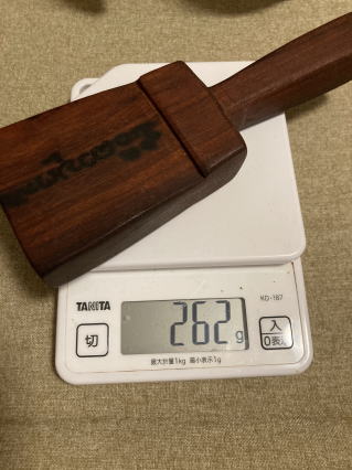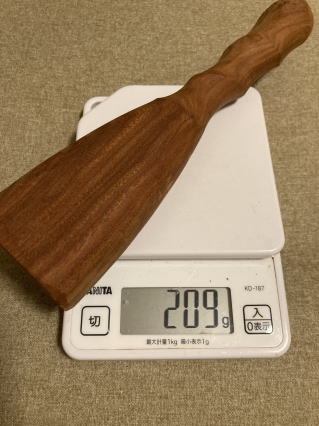 高級家具に使われる水目桜の木です。柔らかい音が心地いいです。グリップは滑り止めに小さなテクスチャカットをしています。軽く植物油で拭いています。3000円 コーンのみ262g 24センチ |