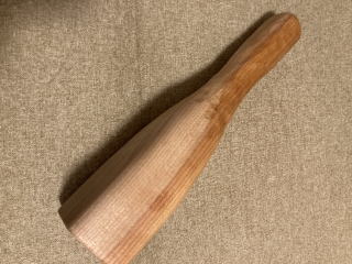 ![]() カエデの木の密度の高い部分で作りました。グリップは螺旋状にカットしてます。 233g 23センチ 2000円コーンのみ |